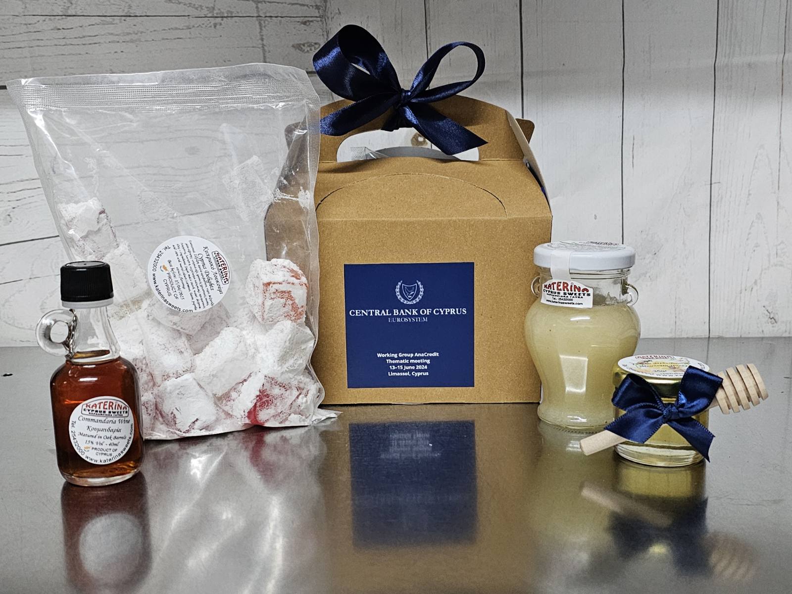Περιέχει γλυκό 120γρ, κουμανδαρία 40μλ, μέλι 35γρ με ξυλάκι μελιού, λουκούμια